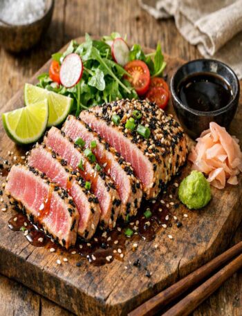 ** Pan-seared ahi tuna recipe with sesame-honey marinade. Quick, elegant, 25g protein per serving. Restaurant-quality results at home in 20 minutes.